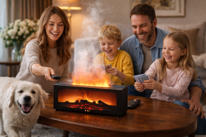 Pojūtis toks autentiškas, kad atrodo lyg sėdėtumėte prie tikro židinio – be dūmų, be priežiūros, be kompromisų.